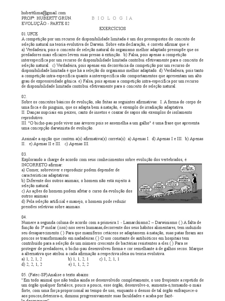 (UEL-PR) Em relação à evolução biológica, considere os fatores abaixo: