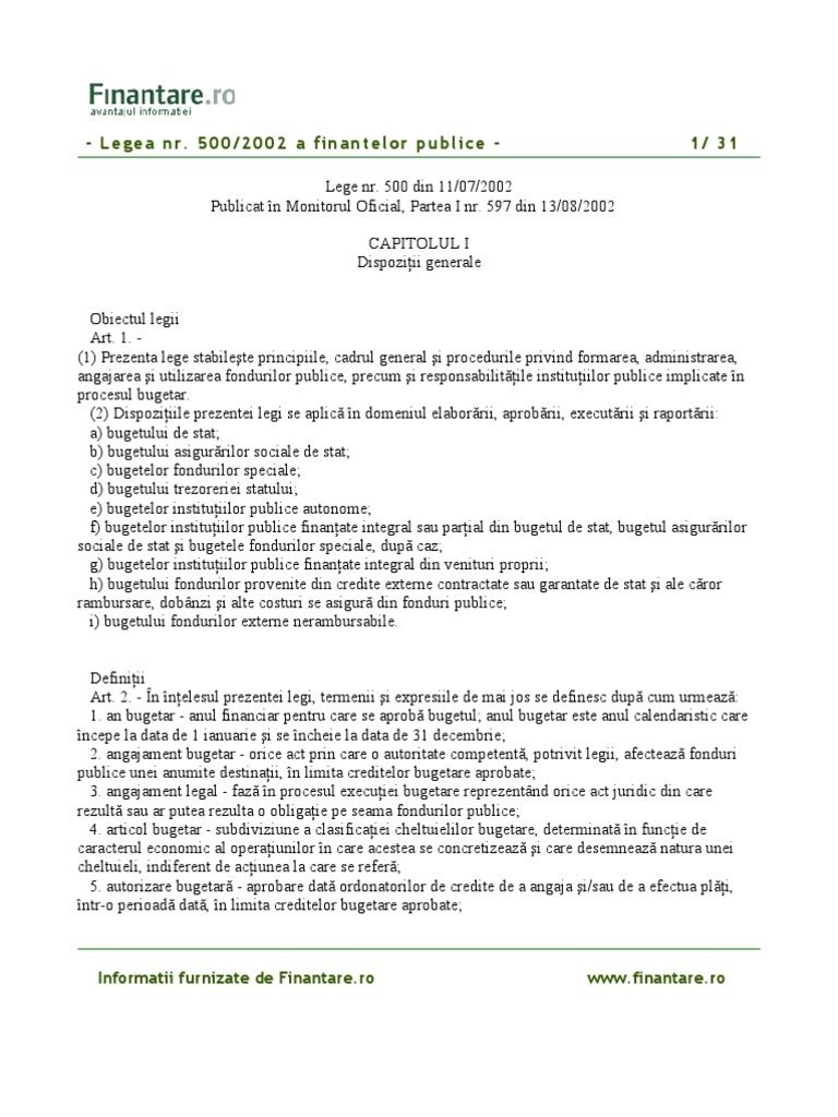 500/2002 a finantelor publice - 1/ 31