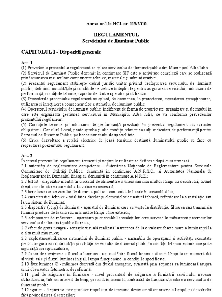 conform prevederilor Capitolului IV din Regulamentul Serviciului de Iluminat Public