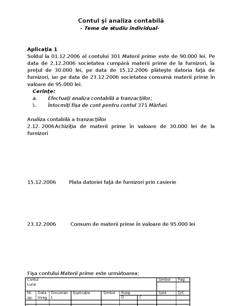 d. Întocmiţi fişa de cont pentru conturile 371 Mărfuri şi 401 Furnizori