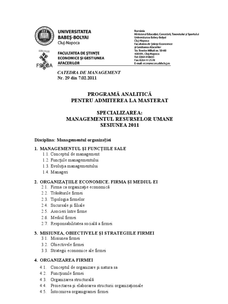 Disciplina: MANAGEMENTUL RESURSELOR UMANE