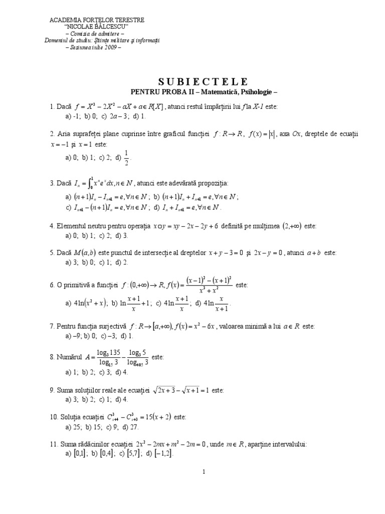 PENTRU PROBA II – Matematică, Psihologie –