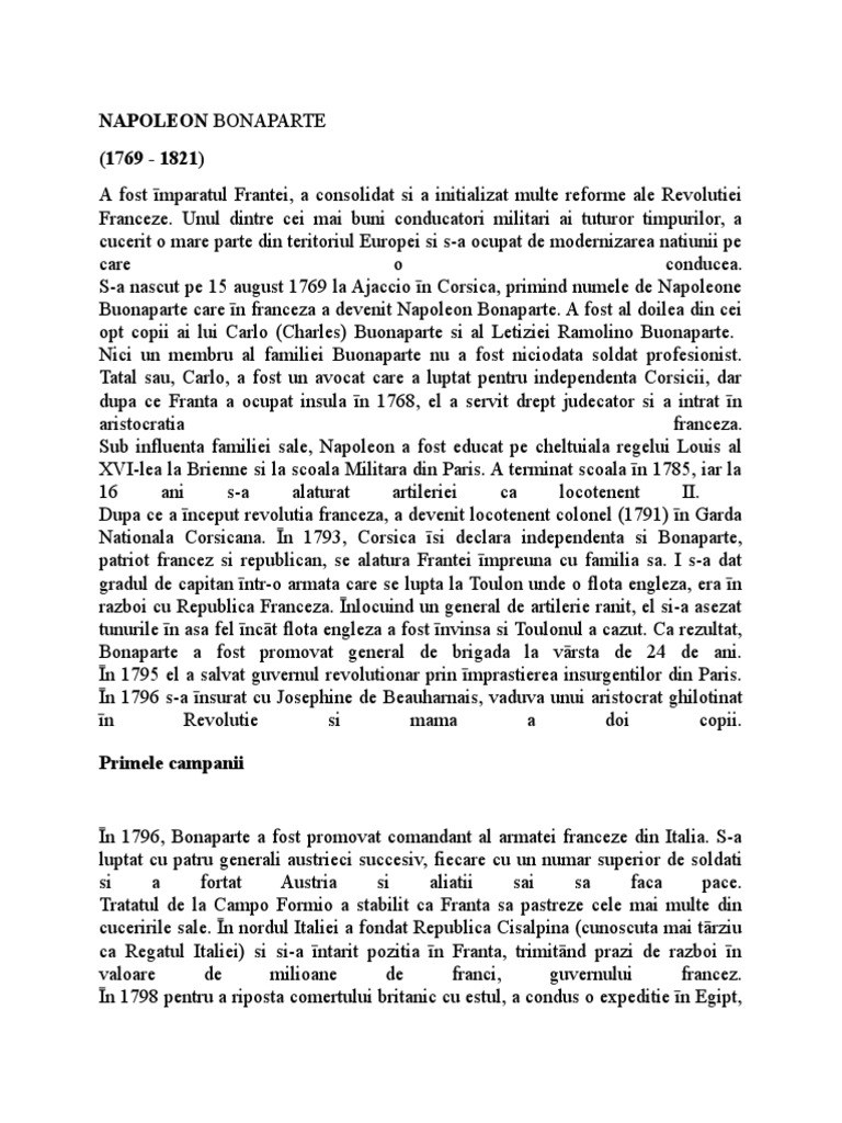 Buonaparte care īn franceza a devenit Napoleon Bonaparte. A fost al doilea din cei