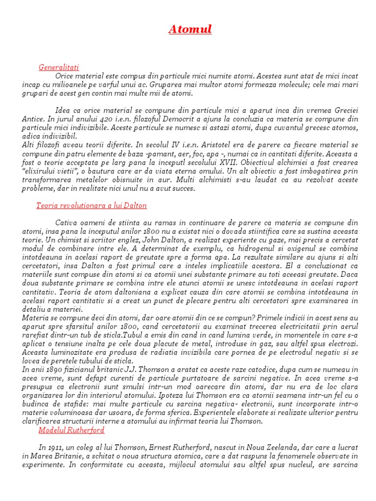 folosit pentru prima dată acum 2500 de ani. Atomii, aşa cum îi cunoaştem astăzi, se aseamănă foarte