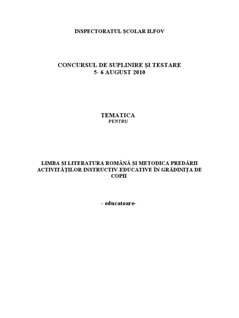 CONCURSUL DE SUPLINIRE ŞI TESTARE