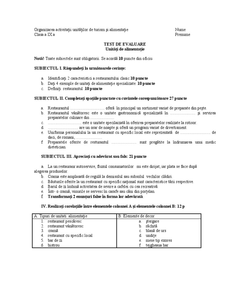 c. Definiţi restaurantul .10 puncte