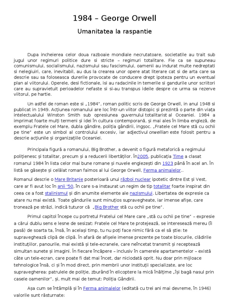 1984 - George Orwell: Umanitatea La Raspantie
