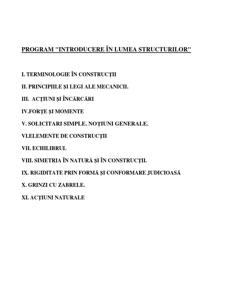 PROGRAM "INTRODUCERE ÎN LUMEA STRUCTURILOR"