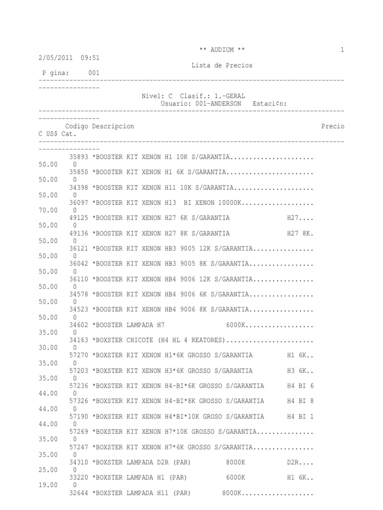 ----------------------------------------------------------------------------------------------35893 *BOOSTER KIT XENON H1 10K S/GARANTIA......................