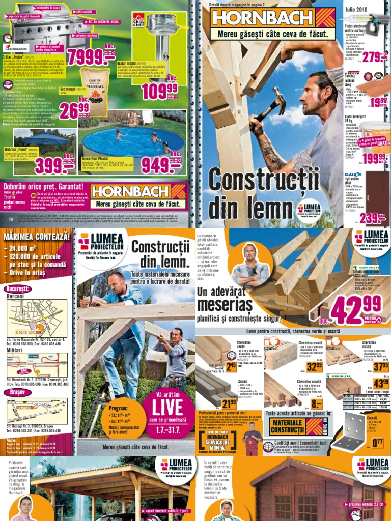 Vei gsi n brourile noastre toate detaliile tehnice necesare, precum i preurile produselor. Brourile sunt disponibile GRATUIT n toate magazinele Hornbach.