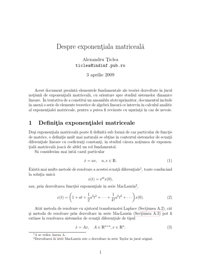 1 Denit ia exponent ialei matriceale
