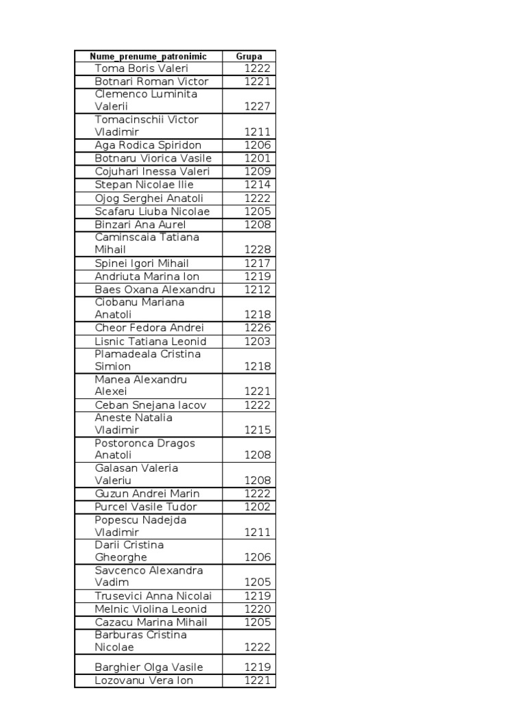 Zaharia Eugeniu Evgheni Mosneguta Maria Valeriu Bunacalea Alina Valerii Potinga Olga Vladimir Birladean Ana Oleg Cerghinscaia Natalia Anatolii Preotesa Ecaterina Mihail Rusnac Elena Andrei Dolescinscaia Livia Vitalie Suvac Ana Vladimir Angheluta Olga Vasile Maevschii Victor Mihai Marciuc Veronica Sergiu Polimaru Lilia Victor Bals Diana Anatoli Dodi Mariana Mihail Cubani Tatiana Leonid Malai Cristina Mihail Sultan Marcela Alexei Gaitur Galina Serghei Balanici Mihail Mihail Josan Tatiana Vladimir Zestrea Anastasia Ivan Sandu Mihaela Mihail Romanas Vlada Liviu Cechina Elena Ion Metlinschii Ivan Anatolii Scaletcaia Olesea Ivan Canatui Ana Gheorghe Ciobanu Cornelia Iurie Cucerescu Tamara Petru Popescu Elena Gheorghe Tabacaru Diana Nicolae Ignat Nicolai Valerian Cateva Irina Alexandr Golban Irina Iuri Talasimova Ecaterina Demian