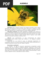 au hrnit din belug cu polen i i-au reactivat glandele cerifere. Succesiunea i repartiia muncii n stup este impus de necesitile de moment ale coloniei fiecare albin trecnd, n mod obinuit, prin diferite stadii i efectund diferite lucrri. 2.3.1. Cuibul C Cuibul albinelor [Link]. Albina tnr Activitatea din stup o fac mai cu seam albinele tinere, cele care nu i-au efectuat nc zborul de recunoatere, albina tnr fiind cea care d vitalitate coloniei. Viabilitatea i productivitatea acestei albine depinde n mare msur de existena din belug a hranei energoproteice n stup, fapt pentru care, mai ales n lucrrile de cretere a mtcilor se recomand hrniri energo-proteice suplimentare. De asemenea, formarea nucleelor de mperechere este recomandat a se face numai cu albin tnr. [Link]. Ceresele-clditoare C - Ceresele-clditoare [Link]. Curitoarele C - Curitoarele [Link]. Doicile D - Doicile [Link]. Prelucrtoarele P - Prelucrtoarele [Link]. Straja coloniei S Straja coloniei [Link]. Trntorii Vezi Generaliti T. - Trntorul [Link]. Ventilatoarele V - Ventilatoarele [Link]. Albinele outoare ntr-o colonie rmas bezmetic numrul albinelor outoare este la nceput de 1-5-10, putnd ajunge, pe parcurs, la 50-80%. Albinele outoare apar i la coloniile productoare de lptior dac apicultorul prelungete perioada de orfanizare peste 9 zile, fr ca albinele s aib botci. Din oule depuse de albinele outoare eclozioneaz trntori ceva mai mici, cu o conformaie sexual normal, dar cu o putere de zbor mai redus, n mod normal neputnd fecunda mtcile care au un zbor mai iute. Ei pot fi folosii totui n extrasezon. 2.3.2. Activitatea n exterior Activitatea din afara stupului este cea mai istovitoare sleind puterile albinelor i contribuind la scurtarea vieii lor. Albina este specia care i-a pstrat cele mai strnse legturi cu mediul, putnd s treac din adposturile artificiale numite stupi, n caviti naturale - unde i continu existena perfect adaptat. Principalul serviciu adus umanitii este polenizarea, 75 % din totalul plantelor cu flori fiind polenizate cu ajutorul insectelor, albinele melifere jucnd un rol extrem de important (venitul naional obinut prin polenizarea cu albine fiind de 10-15 ori superior valorii mierii i cerii produse n acelai interval). [Link] Culegtoarele C - Culegtoarele