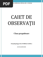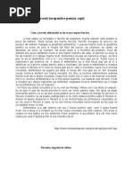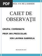 -21-2 ani 29. Imita daultul in si9mple obiceiuri (scuturarea hainelor). 30. Se joaca cu alt copil fiecare facind o activitate separata. 31. I-a parte la jocuri, impinge o masina, arunca o minge la alt copil (2-5 minute). 32. Accepta absenta parintilor continuindu-si jocul. 33. Activ, vrea sa cunoasca imprejurarile. 34. I-a parte la jocuri de manipulare impinge, intoarce mainile cu alte persoane. 35. Imbratisaza sau cere papusi sau jucarii noi. 36. Repeta actiuni care produc ris si atentie. 37. Tine cartea adultului sa o citeasca sau trage de el. 38. Trage de o persoana pentr a-i arata o actiune sau un obiect. 39. Retrage mana, spune :nu: cand este langa un obiect interzis. 40. Asteapta sa fie luat de pe un scaun in altul. 41. Se joaca cu 2-3 copii. 42. Imparte obiecte sau hrana cand I se cere. 43. Saluta egalii, sau adultii familiari cind sint cunostinte. 44. Coopereaza cu parintii 50% din timp. 2-3 ani 45. Poate aduce sau lua obiecte sau gasi persoana din alta camera. 46. Asculta muzica sau povesti 5-10 minute. 47. Spune te rog multumeste cand i se aminteste, i se cere. 48. Incearca sa ajute parintii cu sarcini, facand o parte din munca. 49. Se joaca de-a imbracatul cu hainele adultului. 50. Face o alegere cind e intrebat: Pe cine iubesti?. 51. Intelege sentimentele prin verbalizare : dragoste, tristete, ris. 3-4 ani 52. Respecta reguli de joc imitand actiunile altor copii. 53. Saluta adulti din familie fara a i se aduce aminte. 54. Respecta reguli din joc condus de adulti. [Link] voie sa foloseasca o jucarie cu care se joaca alt copil. 56. Spune te rog si multumesc fara sa i se aminteasca in 50% din cazuri. 57. Raspunde la telefon, cheama adultul sau o persoana cunoscuta. 58. Asteapta sa-i vina randul. 59. Respecta reguli de joc in grup condus de un copil mai mare. 60. Indeplineste cerintele formulate de adulti in 75% din cazuri. -361. Sta in zone delimitate de curtea spitalului, cresei, casei. 62. Se joaca alaturi si vorbeste cu alti copii timp de 30 minute. 4-5 ani