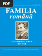 MARTIE 2011 Controversa continu i, aa cum e i corect, Familia romn prezint i punctul de vedere al Academiei Romne. Un comunicat al acestei instituii susine c toi aromnii nord i sud-dunreni sunt romni (armni), cu specificul lor dialectal, folcloric i etnografic, n cadrul generosului popor romn, unul dintre cele mai numeroase i mai puternice din SudEstul Europei. Cei care vor, azi, s se constituie ntr-o minoritate naional aromn n interiorul Romniei ncalc n mod flagrant datele reale ale istoriei i, totodat, valorile noastre morale i spirituale comune, completeaz lista de materiale dedicate aromnilor. Dup cum se observ din comunicat, controversa este departe de a fi elucidat... Capitolele deja consacrate ale Familiei romne (In memoriam, File de istorie, Cununa de aur a Romniei i Romnii n lume) ncheie acest numar al revistei. Ioan BOTI