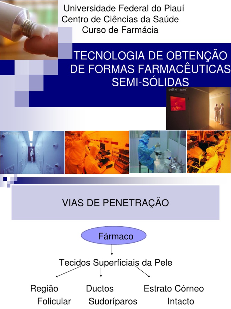 Pomadas; Pastas (Pomadas com elevada % de slidos insolveis); Cremes (emulso consistente); Gis (Preparaes semi-slidas em que a fase lquida