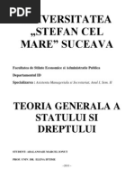 si impune vointa altora si de a determina subordonarea unor legi. Puterea sociala este necesara in orice colectivitate. Este singura care detine monopolul constrangerii fizice si dispune de mijloace necesare. Puterea de stat si aparatul de stat constituie un fenomen indispensabil legate care impreuna ne ofera conceptul statului. Puterea de stat se intemeiaza pe factori psihologici, adica recunoasterea de catre oameni a importantei, binelui, echitati, a caracterului rational sau moral al statului. 2. Este o caracteristica esentiala prin care organizatia statala a societatii se deosebeste de organizarea gentilio-tribala. Se face prin impartirea societatii dupa criterii teritoriale si exercitarea puterii publice pe un anumit teritoriu. In doctrina politico-juridica statul este unitatea a trei elemente: populatia, teritoriul si puterea politica sau suveranitatea.. [Link] puterii de stat presupune cheltuieli legate de intretinerea aparatului de stat de catre populatia asupra careia se exercita aceasta putere 4. Dreptul este mijlocul elaborarii statului iar principala activitate a organelor de stat imbraca forma actelor juridice, normative sau nenormative. Vointa de stat cunoaste si alte forme de exprimare cum sunt : actele politice sau masuri nemijlocite ale statului. Statul este un instrument politic, o organizatie de exercitare a conduceri societatii, care dispune de mijloace coercitive pe care le poate folosi la nevoie. Dreptul reprezinta modalitatea prin care se pune la dispozitia societati un sistem de norme de conduita obligatorie pentru toti membri societati. Dreptul apare ca un instrument al statului pentru reglementarea relatiilor sociale. Normele juridice care alcatuiesc structura statului sunt: Constitutia, legile organice, legi si acte normative, diferite regulamente. Elaborarea lor este in principiu monopolul statului ca expresie a suveranitati sale. 5. Suveranitatea. Statul este organizatia principala a societatii. Intre stat si alte organizatii ca si intre el si cetateni se stabilesc anumite relatii caracterizate prin faptul ca in cadrul lor statul apare ca o organizatie a puterii politice. Suprematia este o caracteristica a puterii de stat care se refera la latura interna, ea exprima faptul ca puterea de stat este superioara oricarei alte puteri interioare din stat. Suprematia puterii de stat se exprima, prin dreptul exclusiv de a decide asupra populatiei care locuieste pe teritoriul sau. Suprematia se manifesta in suveranitatea asupra teritoriului sau integritatea teritoriului si inviolabilitatea frontierelor. Independenta , este al doilea aspect al categoriei univoce a suveranitatii. Suprematia puterii de stat presupune in mod necesar neatarnarea fata de puterea altor state. In relatiile internationale statul duce politica pe care singur si-o stabileste. Independenta nu trebuie inteleasa nici ea in mod absolutizant, ci in cadru unor relatii internationale. Suveranitate si independenta sunt doua notiuni inseparabile care se presupun reciproc si se interconditioneaza. Suveranitatea este acea calitate a puterii de a fi suprema si independenta, in virtutea careia statul are dreptul sa rezolve singur dupa propia sa apreciere problemele sale interne si externe si de a indeplini functiile sale fara a incalca drepturile corespunzatoare ale altor state sau principiile si normele dreptului international. Premisele aparitiei statului: Schimbarile succesive in domeniul procurarii celor necesare traiului, au dus la inlocuirea principalelor preocupari comune: vanatoarea,