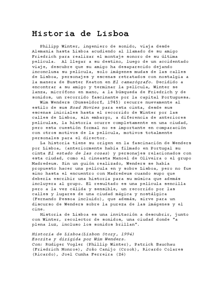 propuesto hacer una película en y sobre Lisboa, pero no fue