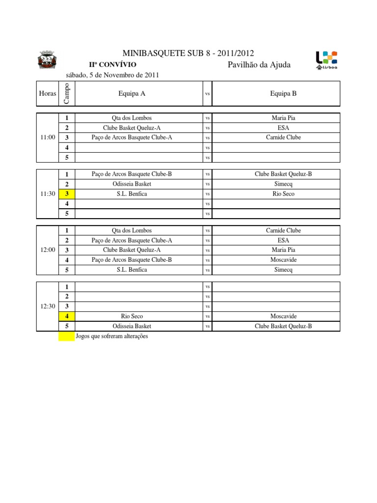 Rio Seco Odisseia Basket Jogos que sofreram alteraes
