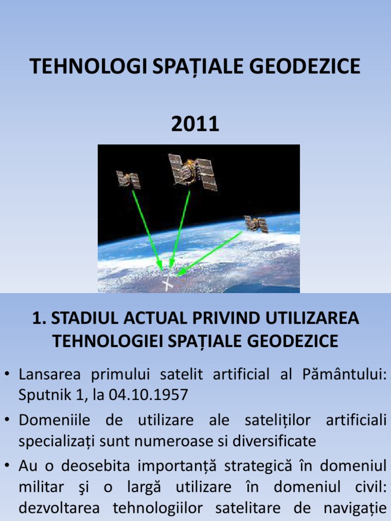 Aceasta tehnologie i-a gsit, de asemenea, o larg aplicabilitate i in domeniul geodeziei i geodinamicii prin realizarea unor reele geodezice la nivel global sau naional, contribuii la determinarea formei si dimensiunilor Pmntului i a cmpului su gravitaional, determinarea deplasarilor placilor tectonice, etc.