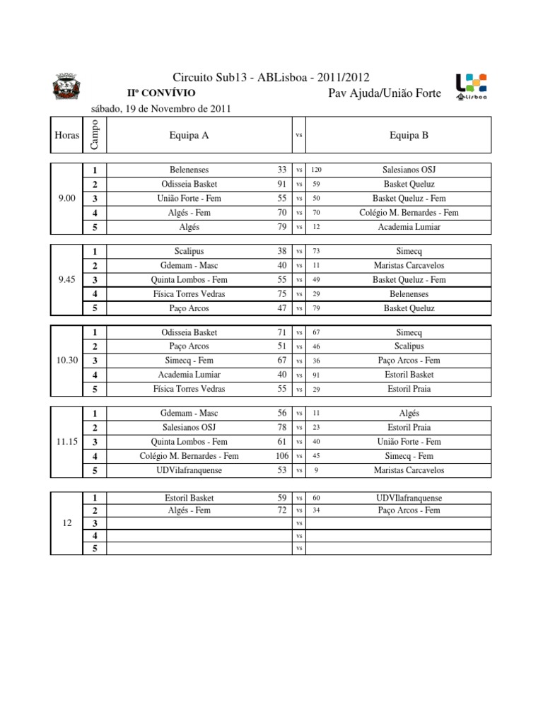 Circuito Sub13 - ABLisboa - 2011/2012