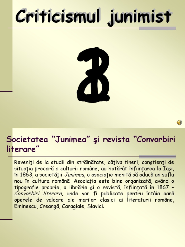 Societatea Junimea i revista Convorbiri literare a avut un rol foarte important n literatura romn ntruct a ncercat s corijeze excesele i s traseze justa delimitare ntre noutile cu adevrat fertile i imitaie. Titu Maiorescu a fost una din cele mai importante personaliti ale culturii romne, fiind i liderul acestei societi.