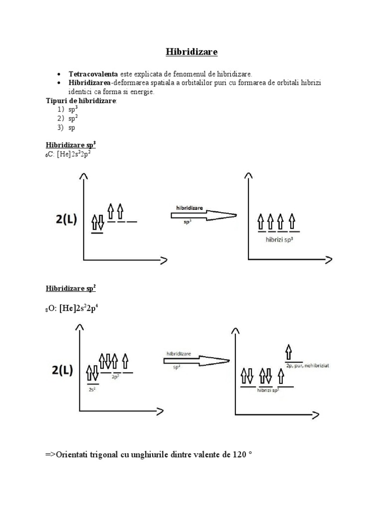 Tetracovalenta este explicata de fenomenul de hibridizare. Hibridizarea-deformarea spatiala a orbitalilor puri cu formarea de orbitali hibrizi identici ca forma si energie. Tipuri de hibridizare: 1) sp3 2) sp2 3) sp Hibridizare sp3 2 2 6C: [He]2s 2p