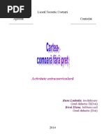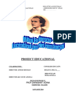 Beneficiari: elevi i cadre didactice Modaliti de evaluare: finalizarea portofoliului, acordarea de diplome 3. NEMURITORUL EMINESCU Data (perioada de desfurare): ianuarie 2012 Locul de desfurare: Sala de clas Participani: elevii claselor V-VIII DESCRIEREA ACTIVITII: activitatea va ncepe cu vizionarea unei prezentri power-point: Viaa i opera lui Eminescu; recitarea unor poezii, interviu imaginar cu scriitorul,; n finalul activitii se desfoar concursul literar O stea care nu va muri niciodat - Eminescu. Concursul cuprinde 4 probe i 2 echipe concurente. Probele: 1.S-l cunoatem pe Eminescu! Aceast prob conine cte 5 ntrebri pentru fiecare echip, despre viaa i opera poetului 2. Recunoatei poezia! Fiecare echip va primi cte un scurt fragment dintr-o poezie scris de Eminescu i trebuie s recunoasc titlul acesteia 3. Cine este in imagine? La aceast prob va trebui ca fiecare echip s recunoasc cte 3 portrete ale unor scriitori romni cunoscui. 4. Cel mai reuit portret (desen, grafic) La primele 3 probe se vor acorda cte 5 puncte pentru fiecare rspuns corect, iar la ultima prob i vor acorda punctaj echipele, una alteia. Activitatea se poate ncheia cu un cuvnt al profesorului. Acesta va oferi cteva concluzii i i va felicita pe elevi pentru activitate. Responsabil: coordonator proiect Beneficiari: elevi i cadre didactice Modaliti de evaluare: finalizarea portofoliului, acordarea de diplome 4. S NE JUCM DE-A TEATRUL Data (perioada de desfurare): februarie 2012 Locul de desfurare: Sala de clas Participani: elevii claselor V-VIII DESCRIEREA ACTIVITII: activitate ncepe cu prezentarea unui eseu, de ctre un elev, cu titlul Pe urmele lui Caragiale; apoi vom urmri o prezentarea power-point: Viaa i opera lui Caragiale; urmtorul moment cuprinde realizarea unei compuneri O zi cu Goe, un interviu imaginar cu scriitorul, realizarea unui desen inspirat din Schiele autorului; n finalul activitii se desfoar concursul literar Pe urmele lui Caragiale. Concursul cuprinde 4 probe si 2 echipe concurente. Probele: 1.S-l cunoatem pe Caragiale! Aceast prob conine cte 3 ntrebri pentru fiecare echip, despre viaa i opera scriitorului 2. Recunoatei opera! Fiecare echip va primi cte un scurt fragment din opera lui Caragiale i trebuie s recunoasc din ce oper face parte. 3. Cine este in imagine? La aceast prob va trebui ca fiecare echip s recunoasc cte 3 portrete ale unor scriitori romni cunoscui. 4. 5 minute actori Fiecare echip va interpreta scurte fragmente din 2 schie ale scriitorului. La primele 3 probe se vor acorda cte 5 puncte pentru fiecare rspuns corect, iar la ultima prob i vor acorda punctaj echipele, una alteia. Activitatea se poate ncheia cu un cuvnt al profesorului. Acesta va oferi cteva concluzii i i va felicita pe elevi pentru activitate. Responsabil: coordonator proiect Beneficiari: elevi i cadre didactice Modaliti de evaluare: finalizarea portofoliului, acordarea de diplome. 5