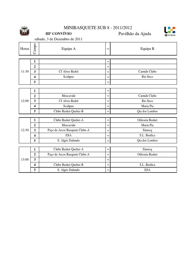Carnide Clube Rio Seco Maria Pia Qta dos Lombos Odisseia Basket Maria Pia Simecq S.L. Benfica Qta dos Lombos Simecq Odisseia Basket S.L. Benfica ESA