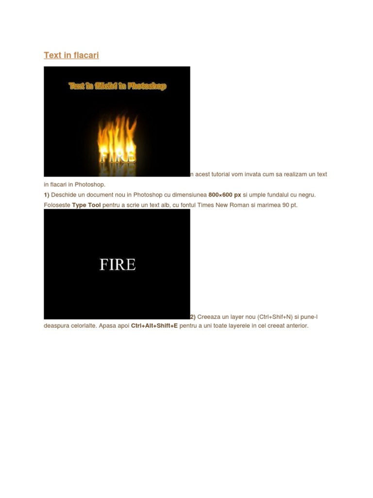 n acest tutorial vom invata cum sa realizam un text in flacari in Photoshop. 1) Deschide un document nou in Photoshop cu dimensiunea 800600 px si umple fundalul cu negru. Foloseste Type Tool pentru a scrie un text alb, cu fontul Times New Roman si marimea 90 pt.