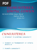 Aceasta expresie ii apartine lui [Link] el n sufletul uman exist un ir de pasiuni si afecte acestea influennd procesul cunoaterii, cunotinele n [Link] umana consta in libertatea de sub influenta acestor afecte si [Link] moment ce libertatea este identificata cu cunoasterea,tendinta de autocunoastere devine una dintre cele mai importante tendinte [Link] este necesitatea cunoscut, conceput, [Link] omul este liber doar dac cerceteaz natura i pricepe legele ei acionnd n conformitate cu aceste legi.
