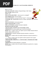 - s manifeste spirit cooperant n activitatea de grup, comunicnd cu partenerii de joc pentru realizarea sarcinii comune. Metode i procedee: Explicaia, conversaia, jocul, problematizarea, competiia, exerciiul. Material didactic: Jetoane reprezentnd fructe i legume de toamn, tabla magnetic, scule cu legume i fructe, calculator, CD cu fructe i legume, plicuri cu ntrebrile, ecusoane (fructe i legume), borcane cu dulcea (gutui, prune, struguri, mere), plcinte (mere, dovleac, morcov, spanac, varz), scobitori, bee de chibrit, plastilin, hrtie creponat sau glasat, carton, foi de hrtie colorate, fie, creioane colorate, maini, tractoare, couri de plastic, jetoane reprezentnd aspecte din cele patru anotimpuri. Pentru jocul didactic: Sarcina didactic: recunoaterea fructelor /legumelor de toamn prin mai multe procedee: ghicitori, cu ajutorul analizatorului tactil i al celui gustativ. Elementele de joc: citirea de ctre educatoare a sarcinii de pe bilet, rspuns individual sau n cor, deplasarea, mnuirea jetoanelor pe tabla magnetic, aplauzele. Regulile jocului: copilul numit de educatoare: (1) rspunde la ghicitoare, (2) vine i caut n scule o legum sau un fruct cu ajutorul analizatorului tactil, apoi aeaz jetonul care reprezint fructul/leguma pe tabla magnetic, (3) gust dulcea sau plcint i denumete fructul/leguma din care a fost realizat, (4) rspunde la ntrebrile cu tlc. Rspunsurile corecte sunt aplaudate i recompensate cu jetoane reprezentnd fructe sau legume. Bibliografie: ,,Curriculum pentru nvmntul precolar, 3-6/7 ani, MECT, 2008 ,,Revista nvmntului precolar nr.1-2/2008 i nr.3- 4/2008 Texte pentru educaia limbajului la precolari, M. Bizdun i A. Neagu, Editura PROGNOSIS Introducere n pedagogia precolar, [Link], Editura Dacia, ClujNapoca, 2002