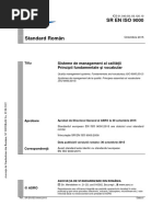 2. Referine normative 3. Termeni i prescurtri 4. Sistem de management al calitii 4.1. Cerine generale 4.2. Cerinte referitoare la documentatie 4.2.1. Generaliti 4.2.2. Manualul Calitii 4.2.3. Controlul documentelor 4.2.4. Controlul nregistrrilor 5. Responsabilitatea managementului 5.1. Angajamentul managementului 5.2. Orientarea ctre client 5.3. Politica referitoare la calitate 5.4. Planificare 5.4.1. Obiectivele calitii 5.4.2. Planificarea sistemului de management al calitii 5.5. Responsabilitate, autoritate i comunicare 6. Managementul resurselor 6.1. Asigurarea resurselor 6.2. Resurse umane 6.2.1. Generaliti 6.2.2. Competen, contientizare i instruire 6.3. Infrastructur 6.4. Mediu de lucru 7. Realizarea produsului 7.1. Planificarea realizrii produsului 7.2. Procese referitoare la relaia cu clientul 7.2.1. Determinarea i analiza cerinelor referitoare la produs 7.2.2. Comunicarea cu clientul 7.3. Proiectare i dezvoltare 7.4. Aprovizionarea 7.5. Producia i furnizarea serviciilor 8. Msurare, analiz i mbuntire 8.1. Generaliti 8.2. Monitorizare i msurare