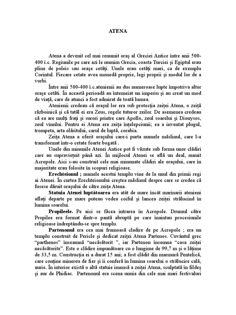 războinică şi că tatăl ei era Zeus, regele tuturor zeilor. De asemenea credeau