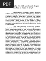 Anciu Ionela-Violeta (SPR II, Seria A) ceea ce ngduie natura umana i totodat i posibilitile reale:legile, aa cum pot fi. Omul este nscut liber, dar pretutindeni e n lanuri. Trebuie cercetat ce poate face s fie legitim o societate politic.1 nainte de expunerea soluiei ideale, Rousseau elimin soluiile false. Una dintre acestea ar fi c subordonarea oamenilor unii fa de alii nu se ntemeiaz pe natur. Familia este cea dinti societate, o societate natural, iar cnd copiii nu mai au nevoie de prini, natura cere ca ea s se dizolve. Faptul c aceasta se menine totui, nu se datoreaz dect unei convenii. Se nltur astfel, o veche tez monarhist care asimileaz puterea regal cu puterea printeasc. Pe de alt parte, existena sclavajului nu justific ntemeierea despotismului pe drept natural; sclavajul e contrar naturii.2 O alt soluie fals o reprezint dreptul celui mai tare. Acest drept nu exist, din simplul motiv c in aceast expresie, sensul cuvntului drept este nul; astfel, se poate respinge afirmaia teologilor conform creia orice putere vine de la Dumnezeu, i totodat se poate nega legitimitatea principiilor care nu se sprijin dect pe for-- popoarele au dreptul de a-i rsturna odat ajunse mai puternice dect ei.3 Cea de-a treia soluie eliminat de Rousseau este cea conform creia ar fi nevoie de o convenie pentru a stabili o autoritate legitim, ns niciun om nu poate, printr-o convenie, si nstrineze libertatea, cu att mai puin s nstrineze libertatea copiilor si. Pretinsul drept la sclavaj nu-i are originea n rzboi. Rzboiul urmrete numai distrugerea unui stat, fr a da vreun drept asupra necombatanilor, prin urmare dreptul de cucerire nu are nicio baz, sclavul fiind n stare de rzboi permanent cu stpnul su. Are dreptul s se revolte de ndat ce aceast posibilitate apare.4 Aadar, dac un popor ar avea dreptul s se druiasc unui rege, ar trebui s se explice de ce este el un popor i pentru ce, dac majoritatea a hotrt s-i ia un stpn, minoritatea trebuie s-i dea ascultare. Suntem deci obligai s ne ntoarcem ntotdeauna la o prim convenie, una care nu e ntemeiat pe for.5 Aceast convenie prim este considerat un pact social. La un moment-dat, omul nu mai poate tri n starea de natur i trebuie s se asocieze cu ceilali oameni pentru a putea supravieui; n acest context, trebuie gsit o form de asociere care s asigure fiecruia protecia ntregii fore comune, fiecare individ rmnnd la fel de liber ca i nainte. Intenia lui Rousseau este, deci, de a fundamenta libertatea civil. Prin pact, fiecare asociat cedeaza toate drepturile sale comunitii, libertatea fiind asigurat prin egalitate; formula necesar pactului este cea prin care fiecare dintre noi pune n comun persoana i toat puterea sa sub direcia suprem a voinei generale i primim n corpore pe fiecare membru ca parte indivizibil a ntregului. Pactul social const n contractarea fiecrui individ cu el nsui, dat fiind c este o parte din colectivitatea cu care ncheie contractul. Suveranul sau corpul politic, ce reprezint ansamblul