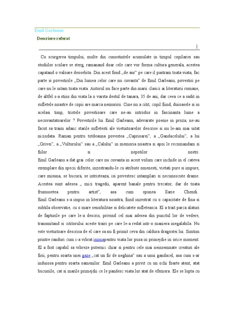 Emil Garleanu Descriere referat | Cu scurgerea timpului, multe din cunostintele acumulate in timpul copilariei sau studiilor scolare