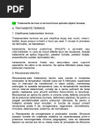 2.2.2. Clirea superficial A. SCOP Clirea superficial este un tratament termic local, care se aplic n scopul obinerii unei structuri martensitice n suprafaa produselor, pe adncimi cuprinse ntre zecimi de milimetru pn la 5-10 mm. n urma aplicrii clirii superficiale rezult piese duplex, avnd stratul exterior dur, rezistent la uzur i oboseal i miezul plastic i tenace, rezistent la celelalte tipuri de solicitri n exploatare: ncovoiere, oc, rsucire. n plus, tensiunile de compresiune din stratul clit mresc mult rezistena la solicitri alternante. Pentru a obine ns o astfel de asociere de caracteristici, clirea superficial trebuie aplicat la oeluri hipoeutectoide semidure, avnd coninutul n carbon cuprins ntre 0,3% i 0,65%. B. PRINCIPII Clirea superficial se realizeaz prin nclzirea cu vitez mare a stratului superficial al produselor pn la o temperatur situat n domeniul austenitic, meninerea de scurt durat i rcirea rapid, cu viteze mai mari dect viteza critic de clire.
