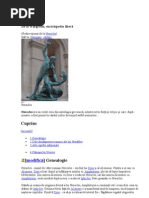 nfiineaz Jocurile Nemeiene. A doua munc este uciderea hidrei din Lerna. Nscut din Typhon i din Echidna, hidra era un balaur monstruos, a crui rsuflare ucidea pe oricine i simea duhoarea. Ea avea nenumrate capete, care pe msur ce erau retezate creteau la loc. Unul dintre capete era nemuritor. Heracles a reuit sa-i reteze capetele i, cu ajutorul nepotului su, Iolaus, s-i ard carnea n locul unde fuseser, pentru a le mpiedica s se mai regenereze. La urm el i reteaz i capul cel nemuritor i, ngropndu-l n pmnt, mpinge deasupra lui o stnc uria. Sngele hidrei era i el aductor de moarte. De aceea, la plecare, eroul i-a muiat sgeile n el, fcndu-le astfel veninoase. A treia munc este prinderea mistreului de pe muntele Erymanthus. Groaznicul animal a fost urmrit de ctre erou prin mijlocul unor zpezi nalte, pn cnd, sleit de puteri, a fost prins. A patra munc este prinderea unui cprior cu coarne de aur, care aparinea zeiei Artemis. Vestit prin iueala lui, cpriorul a fost fugrit un an ncheiat de ctre erou, care, n cele din urm, l-a ajuns n Arcadia si, rnindul uor, a reuit s-l prind. 2/13/12 Heracle - Wikipedia [Link]/wiki/Heracle 3/6 Culegerea merelor din Grdina Hesperidelor - A unsprezecea munc a lui Heracle A cincea munc este curarea grajdurilor lui Augias. Augias, regele din Elis, avea peste trei mii de vite i grajdurile care le adposteau nu mai fuseser curate de peste treizeci de ani. La porunca lui Eurystheus,