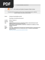 ateptare a unui pericol nedeterminat [32]. n operele sale W. Reich, 1983, lrgete teoria psihodinamic a lui S. Freud, incluznd n ea, n afar de libido, toate procesele biologice i psihologice de baz. El explic plcerea ca o micare liber a energiei din mijlocul organismului spre periferie, n lumea exterioar. n acest context W. Reich definete anxietatea ca un obstacol al contactului acestei energii cu lumea exterioar. ntoarcerea ei n interior creeaz fixaii musculare, distorsioneaz i distruge sensibilitatea normal n special, cea sexual [234, 266]. W. Reich nelege caracterul omului, ca un patern stabil al reaciilor acestuia la diverse situaii. Funcia principal a caracterului este aprarea de anxietate, care este provocat de emoiile sexuale, nsoite de frica pedepsei. Trsturile de caracter nu sunt simptome nevrotice. Diferena const n aceea c simptomele nevrotice (fobiile i frica iraional) sunt trite ca strine individului, n timp ce trsturile nevrotice ale caracterului (dragostea exagerat fa de curenie sau sfiala anxioas) sunt retrite ca parte component a personalitii. n aa mod, W. Reich, introduce un aspect important n descrierea fenomenului anxietii, i anume rigiditatea, fixaia (ncordarea) muscular, refuzarea ndeplinirii activitii prin calea blocrii organelor corpului.