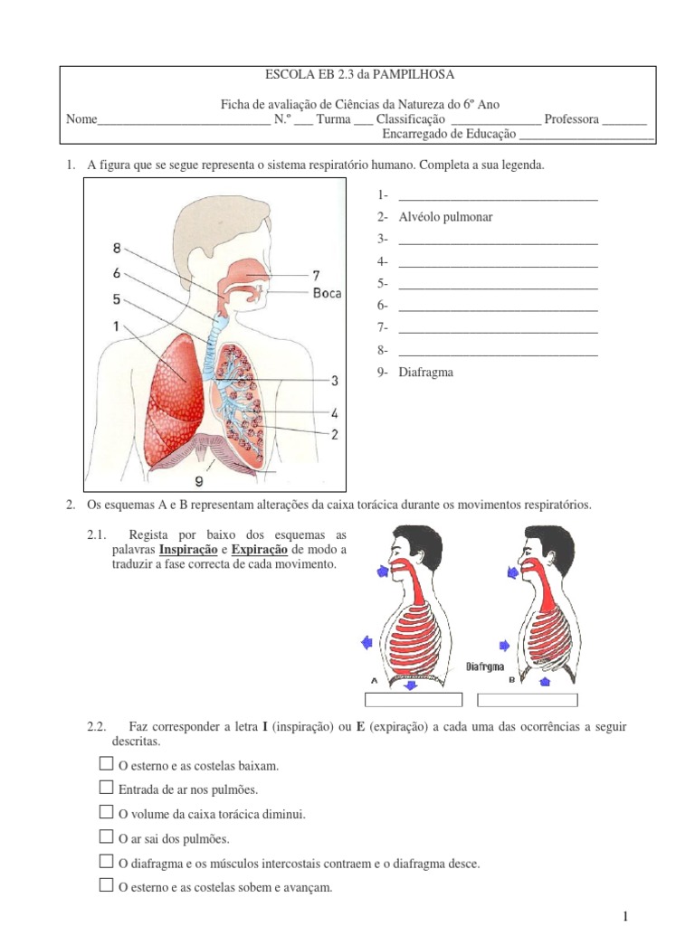 1. A figura que se segue representa o sistema respiratório humano. Completa a sua legenda.