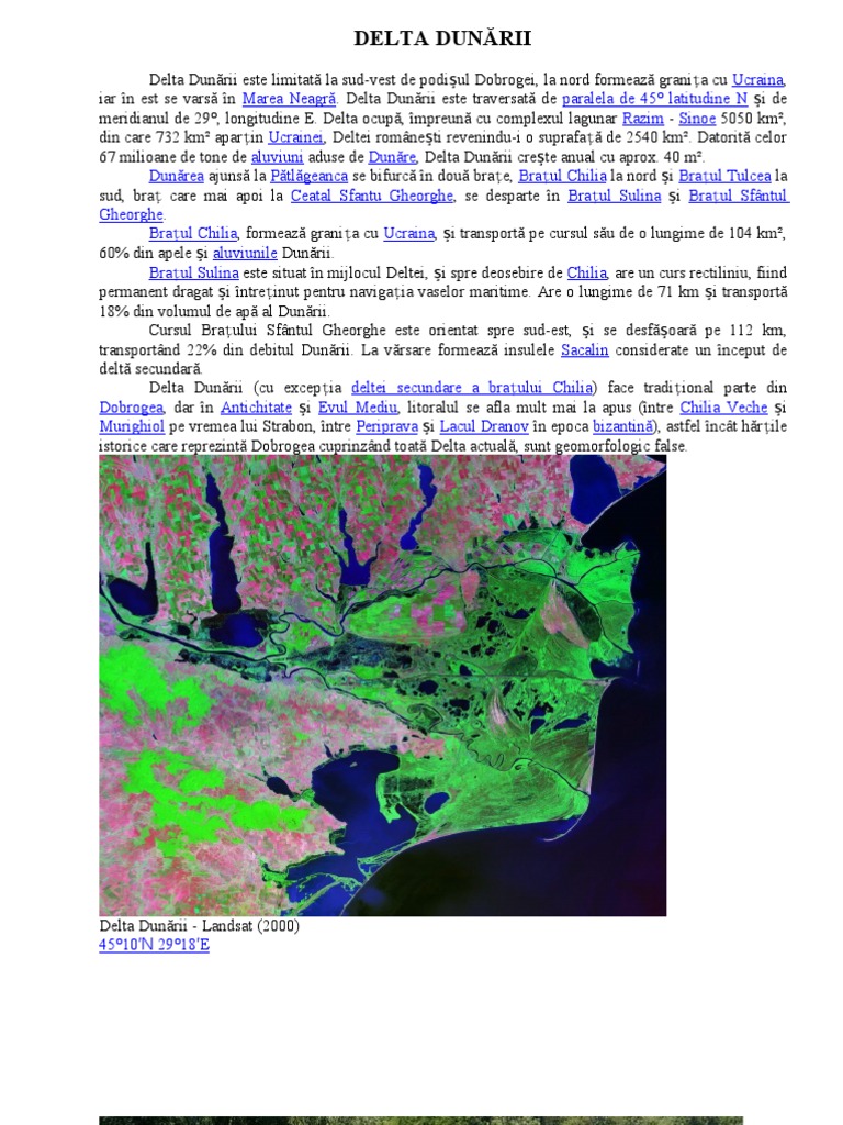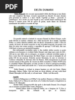 Delta Dunrii (3446 km), aflat n mare parte n Dobrogea, Romnia, i parial n Ucraina, este cea mai mare i cea mai bine conservat dintre deltele europene. Delta Dunrii a intrat n patrimoniul mondial al UNESCO n 1991, este clasificat ca rezervaie a biosferei la nivel naional n Romnia i ca parc naional n taxonomia internaional a IUCN. IMAGINI DIN DELTA DUNRII