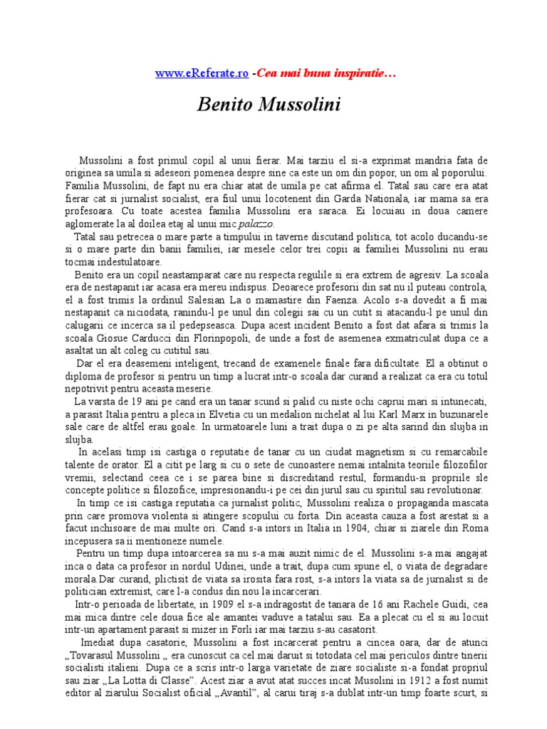 „Tovarasul Mussolini „ era cunoscut ca cel mai daruit si totodata cel mai periculos dintre tinerii