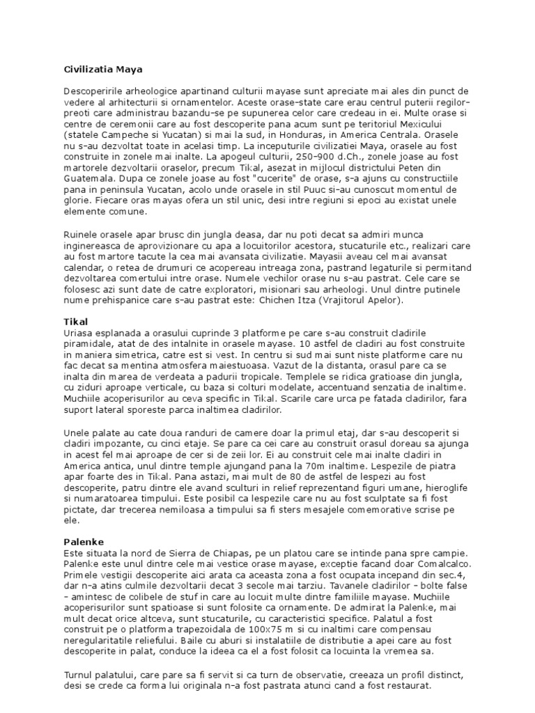 fi ajuns la apogeu intre 800-900 [Link]. Boltile mayase construite din piatra sunt deosebit