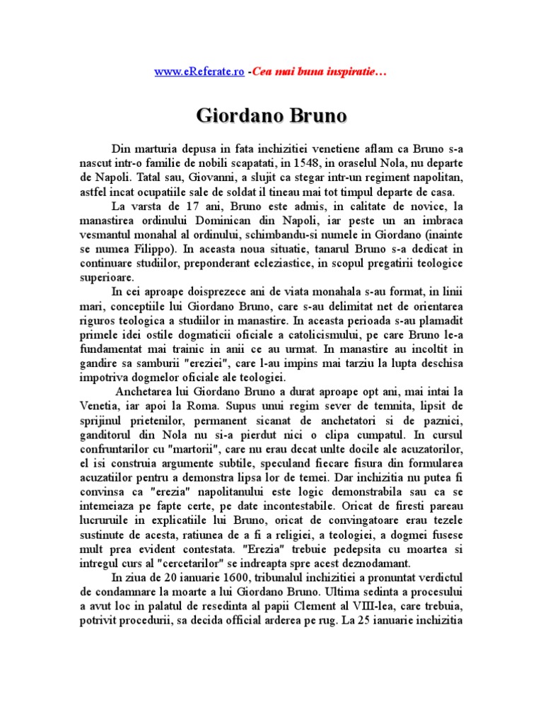 mari, conceptiile lui Giordano Bruno, care s-au delimitat net de orientarea