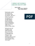 Aceasta zi preasfintita Si sarbatoare marita Noi poftim ca sa va fie La multi ani cu bucurie. Sa aveti zile senine Sa petreceti toti cu bine. La multi ani s-aveti folos De nasterea lui Hristos S-a nascut Mesia Fiul lui Dumnezeu. Si-a venit pe lume La poporul sau. Si frica si spaima Alung-o de la tine Da loc bucuriei Hristos la tine vine.