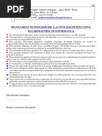 Pentru buna desfurare a orelor i aplicarea programei, profesorul trebuie s adapteze coninutul instruirii la coninutul disciplinelor tehnice de specialitate i s colaboreze cu profesorii de la disciplinele de specialitate pentru realizarea de activiti specifice domeniului. Pentru buna desfurare a orelor i aplicarea programei se sugereaz urmtoarele activiti de nvare specifice tuturor liceelor SPECIALIZAREA TIINE ALE NATURII PROFIL REAL - prelucrarea datelor experimentale, modelarea, simularea i controlul evenimentelor, reprezentarea grafic a datelor experimentale - utilizarea bazelor de date pentru evidenierea n timp a unor fenomene - folosirea unor aplicaii specifice domeniului SPECIALIZAREA TIINE SOCIALE PROFIL UMANIST - documentarea i realizarea unor documente specifice domeniului: chestionare, interviuri, teste, scrisori de intenie, cerere de oferte, oferte, prelucrarea datelor statistice i reprezentarea grafic a acestora LICEU TEHNOLOGIC - PROFIL RESURSE - realizarea unor documente specifice domeniului: reete de fabricaie, buletine de analiz pentru materii prime i materiale i produs finit, fi de eviden a materiilor prime i auxiliare, raport de fabricaie, fie de eviden pentru produsele finite, situaii de consum specific, evidena materiilor prime i a materialelor, rapoarte lunare, trimestriale i anuale privind consumul de materii prime i materiale, realizarea de bilanuri pariale i totale, realizarea unei baze de date privind microorganismele utile i duntoare specifice domeniului, privind condiiile externe care influeneaz activitatea microorganismelor, precum i microorganismele care produc fermentaii, preluarea, analiza, prelucrarea i interpretarea datelor coninute n bazele de date specifice create, etc. LICEU TEHNOLOGIC - PROFIL SERVICII - realizarea unor documente specifice domeniului: cerere de oferte, ofert, scrisoare comercial, procese verbale, rapoarte de gestiune, de sintez a activitii economice, etc. - aplicaii realizate cu ajutorul foilor de calcul pentru evidena cheltuielilor i veniturilor, pentru determinarea profitului i a impozitului pe profit, a TVA-ului etc. - folosirea aplicaiilor pentru realizarea proiectelor ce au n vedere bagajul de cunotine economice dobndite de elev la disciplinele de specialitate LICEU TEHNOLOGIC - PROFIL TEHNIC - folosirea aplicaiilor pentru realizarea proiectelor ce au n vedere bagajul de cunotine tehnice dobndite de elev la disciplinele de specialitate - aplicaii realizate cu ajutorul foilor de calcul pentru evidena materialelor folosite, a msurtorilor realizate, a fielor tehnice, a unor calcule statistice Sarcinile de lucru alese pot fi att din domeniul tehnic (industrial) ct i din domeniul monitorizrii condiiilor de mediu (aplicaii n ecologie), al serviciilor (transport n comun, distribuie energie electric) sau al informatizrii habitatului. LA PROFILURILE SPECIFICE FILIEREI VOCAIONALE, se va acorda o pondere important realizrii de sarcini de lucru specifice specializrii corespunztoare. PENTRU TOATE SPECIALIZRILE discuii cu elevii asupra necesitii validrii datelor n conformitate cu normele i standardele n vigoare. gsirea unor date reprezentative pentru cazuri generale, respectiv descoperirea a ct mai multe dintre cazurile particulare