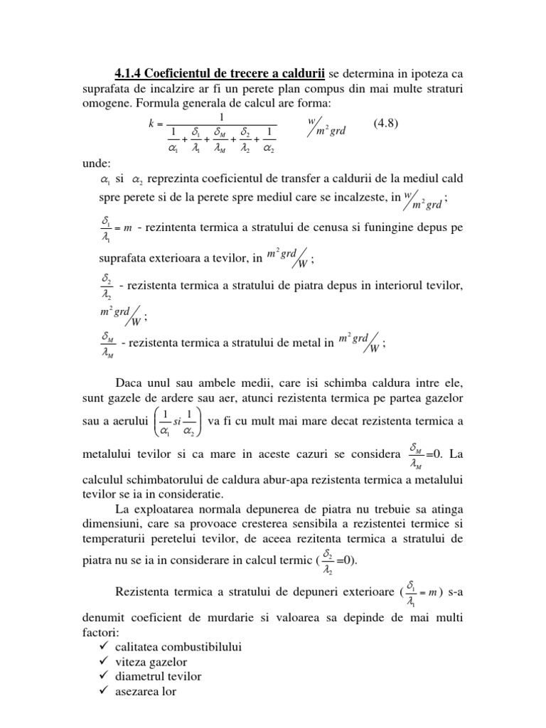 4 Coeficientul de trecere a caldurii se determina in ipoteza ca