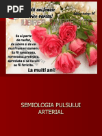 este manifestarea periferic a activitii mecanice a inimii, constnd dintr-o und expansiv periodic a peretelui arterial, sincron cu ejecia ventricular, perceput la palparea unei artere pe esutul osos dur subiacent practic se palpeaz micarea peretelui arterial generat de o und de presiune generat de inim n sistol, numit unda pulsului