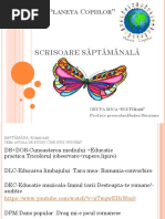 SCRISOARE ADRESAT PRINILOR, BUNICILOR,... Dragi prini, bunici, mtui, ... Miroase-a iarb verde . mi umflu nrile i respir aerul praspt de primvar . Ce sentimente ne incearc! Bucurie , entuziasm , speran , renatere , curaj , spirit inovativ , toate datorit primverii , care ne ncarc bateriile i ne d puterea de a continua i a ne propune noi activiti. Noi, oamenii maturi , stim cu toii ce avem de fcut o dat cu venirea primverii , dar puii notri trebuie s nvee . Cum la ar treburile sunt multe primvara , este imposibil ca precolarii s nu obsereve de la proprii prini ce au de fcut. n schimb , cotropii de multitudinea treburilor acetia nu au timp s le vorbeasc copiilor despre obiceiurile de primvar i nsemntatea lor , despre ce simt oamenii primvara , etc. De multe ori mamele nu au timp s-i aminteasc nici de ziua lor . De aceea un rol important i revine colii . Noi, cadrele didactice , avem datoria s-i nvm pe copii s-i recunoasc sentimentele , s le exprime , s le neleag i s-i fac pe oamenii din jur s se bucure i s retriasc clipe de renatere mpreun cu proprii copii. Proiectul educativ Primvara soare, floare i culoare!!! are rolul de a orna cu simminte cunotinele despre primvar ale copiilor notri , dar i de a le oferi mamelor i femeilor un dar de suflet din munca noastr i a precolarilor notri, pe care i nvm s triasc intens n comunitate i s transmit mai departe bucuria renaterii naturii odat cu venirea primverii. V mulumim i v ateptm, Precolarii grupei Fluturaii si educatoarele lor