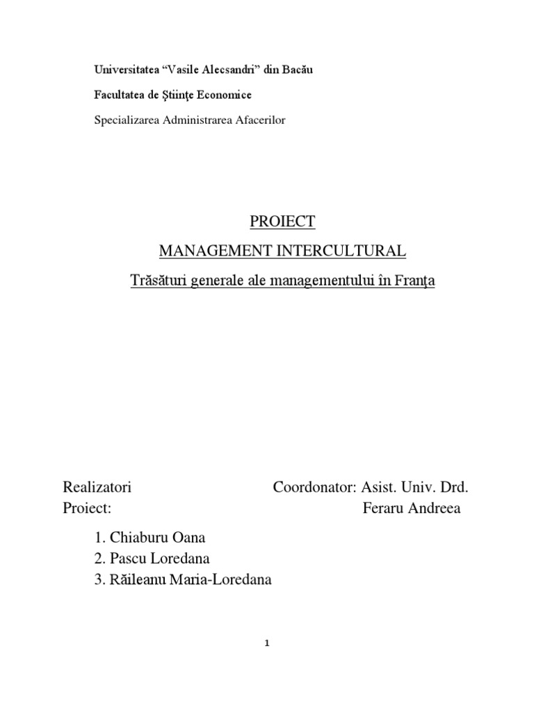PROIECT MANAGEMENT INTERCULTURAL Trsturi generale ale managementului n Frana